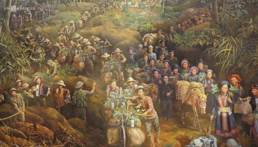 Du khách chiêm ngưỡng bức tranh panorama tái hiện chiến dịch Điện Biên Phủ