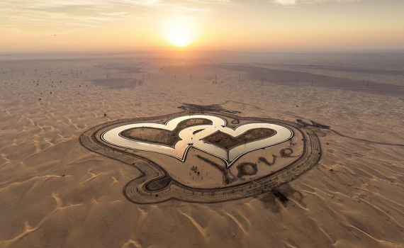 Hồ nhân tạo hình 2 trái tim lồng vào nhau với hệ thực vật phong phú, đem lại nét độc đáo cho sa mạc khô cằn của Dubai.