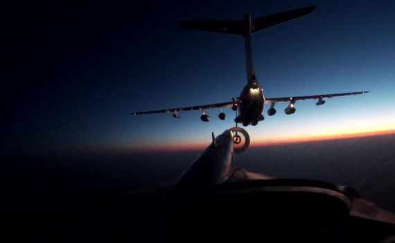 Khoảnh khắc máy bay tiếp nhiên liệu trên bầu trời đêm