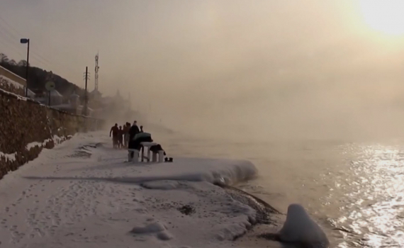 Người Nga tắm hồ băng dưới trời -33 độ C
