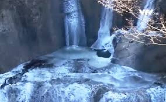 Thác nước Fukuroda đóng băng vì giá lạnh