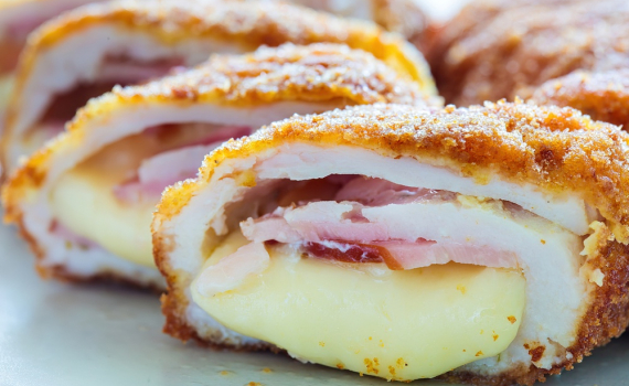 Cordon Bleu được làm từ thịt gà hoặc thịt lợn, sau đó nhồi với phô mai, thịt nguội và nướng giòn để tạo nên món ăn ngon, hấp dẫn ngay từ miếng cắn đầu...