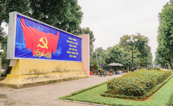Các tuyến phố tại Hà Nội đã rực rỡ cờ đỏ sao vàng, áp phích, khẩu hiệu để chào mừng Đại hội đại biểu toàn quốc lần thứ XIII của Đảng.