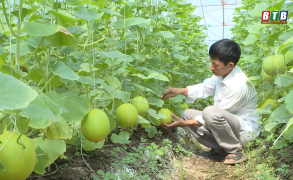 Mạnh dạn vay vốn, đầu tư sản xuất theo công nghệ của Israel đến nay mô hình trồng dưa trong nhà lưới của chị Trần Thị Nhàn, thôn Phú Vật, xã Tiến Đức...