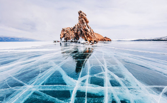 Trong những tháng mùa đông lạnh tới -20°C, toàn bộ mặt hồ Baikal bị bao phủ bởi một lớp băng dày tạo nên khung cảnh rất ngoạn mục.