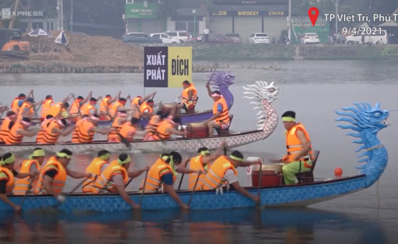 Hàng chục nghìn người đổ về công viên Văn Lang theo dõi, cổ vũ 10 đội bơi chải thi đấu trong khuôn khổ lễ hội Đền Hùng 2022 do thành phố Việt Trì tổ...