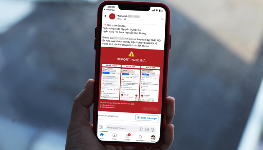 Sau quảng cáo tai nghe giả giảm giá 70% trên Facebook, đến lượt các phòng trà kêu oan vì fanpage bị giả danh, lừa người dùng chuyển khoản mua vé.
