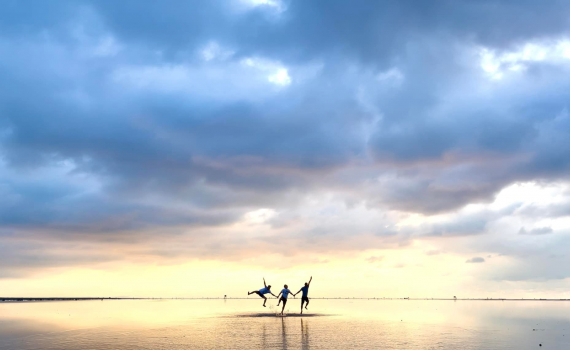Mặt biển phẳng lặng phản chiếu những tia nắng rực rỡ của buổi sớm mai, tạo nên không gian mênh mang, vô hạn là điểm khiến bãi biển vô cực tại Thái Bình...