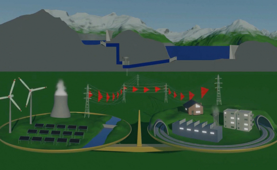 Hệ thống pin nước nằm ở độ sâu 600m bên dưới dãy Alps, Thụy Sĩ hoàn thành sau 14 năm xây dựng, có công suất lưu trữ đến 20 triệu kWh.