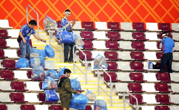 Cổ động viên Nhật Bản gây ấn tượng khi nán lại dọn rác ở sân Khalifa