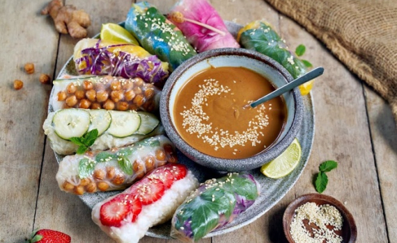 Không chỉ bổ dưỡng, món gỏi cuốn với rau củ dưới đây còn khiến bạn ăn hoài không ngán nhờ hỗn hợp sốt bơ đậu phộng thơm ngậy.