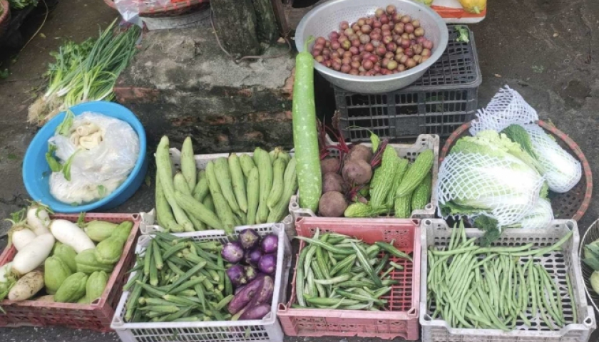 Tại nhiều chợ dân sinh ở Hà Nội, Hải Phòng, các loại rau muống, mồng tơi, cải đều có giá 15.000 đồng một bó, tăng khoảng 30% so với hai ngày trước.