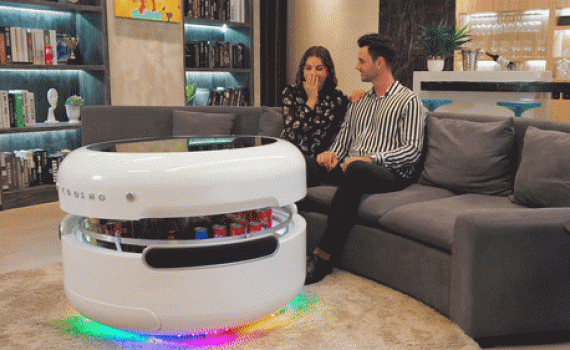 Chiếc bàn cà phê dùng trí tuệ nhân tạo, ra lệnh bằng giọng nói, có thể hỏi thông tin, nghe nhạc, sạc pin không dây trên mặt bàn. Thân bàn thiết kế như tủ...
