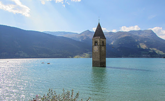 Tháp chuông nằm giữa hồ Resia khiến nơi đây như hiện ra từ cổ tích.