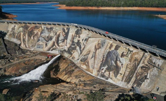 Sau 4 tháng, họa sĩ người Australia Van Helten đã hoàn thành xong bức tranh tường khổng lồ theo trường phái hiện thực trên đập nước Wellington.