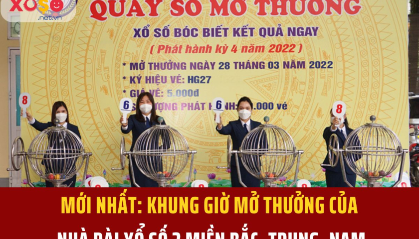 Mới nhất: Khung giờ mở thưởng xổ số 3 miền Bắc, Trung, Nam