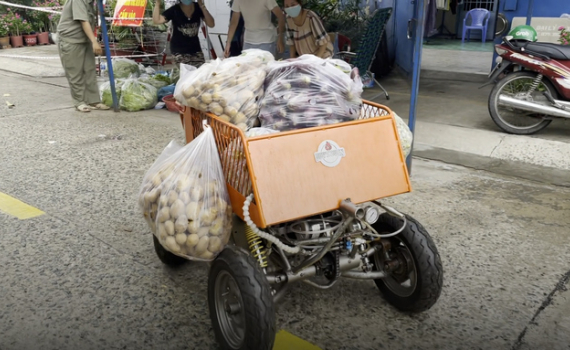 Anh Vĩnh Duy bỏ ra 80 triệu đồng chế tạo robot vận chuyển hàng với mục đích giữ khoảng cách khi đi tiếp tế thực phẩm trong khu phong tỏa, cách ly.