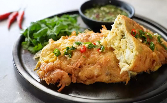 Trứng được chế biến với lớp ngoài giòn và bên trong bông xốp cùng nhân thịt cua thơm ngon giúp bạn có bữa ăn lạ miệng.