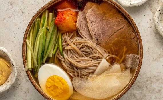 Makguksu là món mì lạnh trộn với rong biển, trứng... được giới trẻ Hàn Quốc ưa thích, đặc biệt vào những ngày hè nắng nóng.