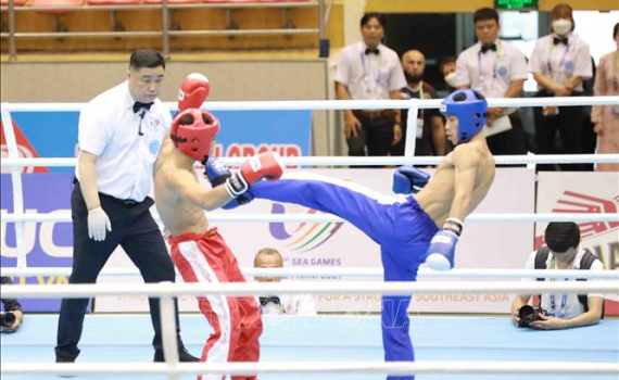 Tối 11/5, tại Nhà thi đấu đa năng tỉnh Bắc Ninh, các trận bán kết Kickboxing SEA Games 31 tiếp tục diễn ra.