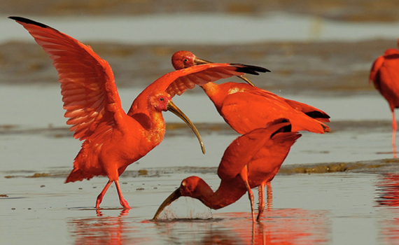 Chế độ ăn chứa nhiều sắc tố astaxanthin tạo nên màu lông không thể nhầm lẫn của cò quăm đỏ, giúp chúng trở thành quốc điểu của Trinidad và Tobago.