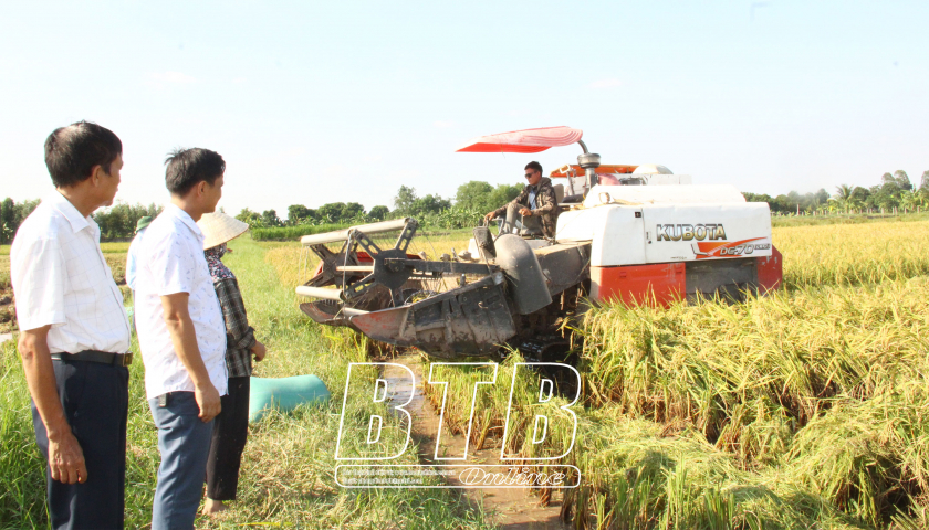 Đông Hưng: Máy gặt xuống đồng, nông dân không còn vất vả