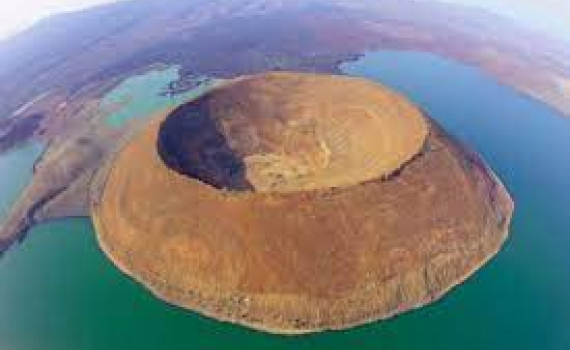 Miệng núi lửa khổng lồ nổi giữa hồ nước ở Kenya