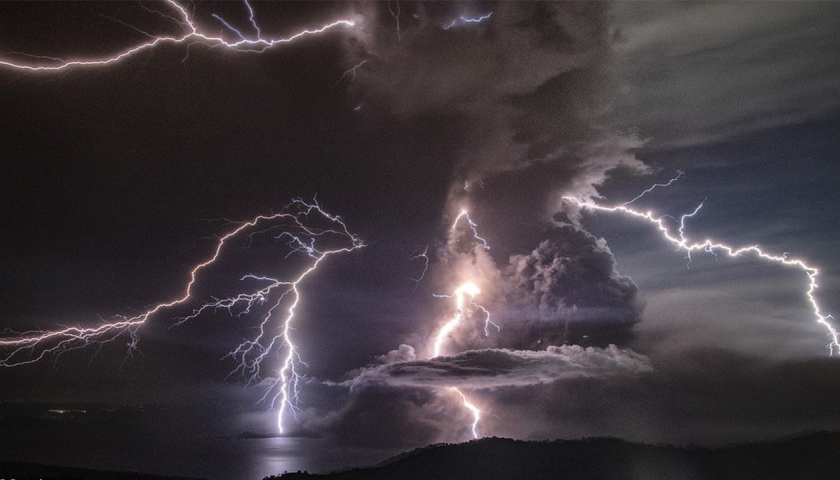 Hàng loạt tia sét lóe sáng trên miệng núi lửa