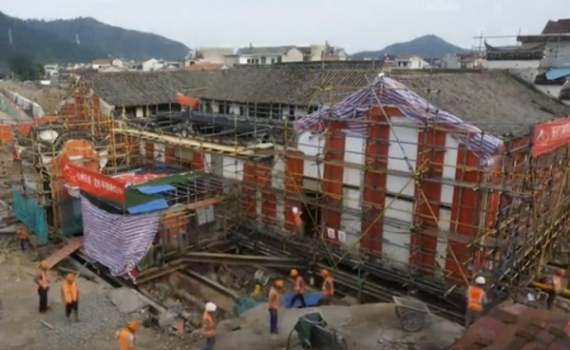 Trung Quốc di dời tòa nhà cổ 55 m để tránh dòng nước lũ trên con sông thuộc tỉnh Chiết Giang.