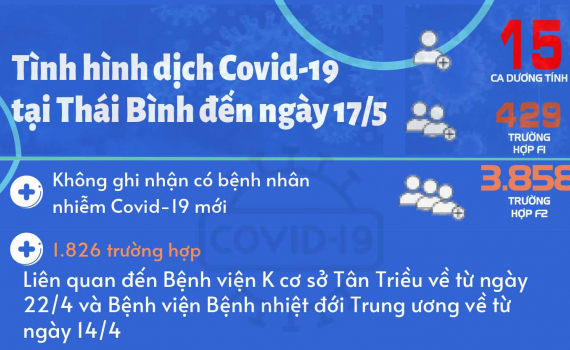 Theo Bản tin Bộ Y tế về tình hình chống dịch COVID-19, trong ngày 17/5, nước ta ghi nhận thêm 2.043 ca mắc mới; có 853 bệnh nhân được công bố khỏi...