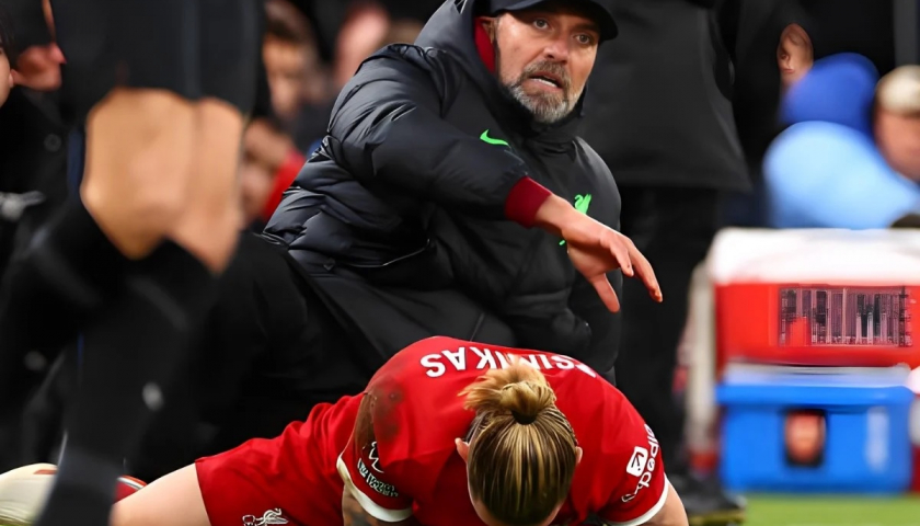 Hậu vệ trái Kostas Tsimikas đã dính chấn thương sau khi ngã vào huấn luyện viên Jurgen Klopp.