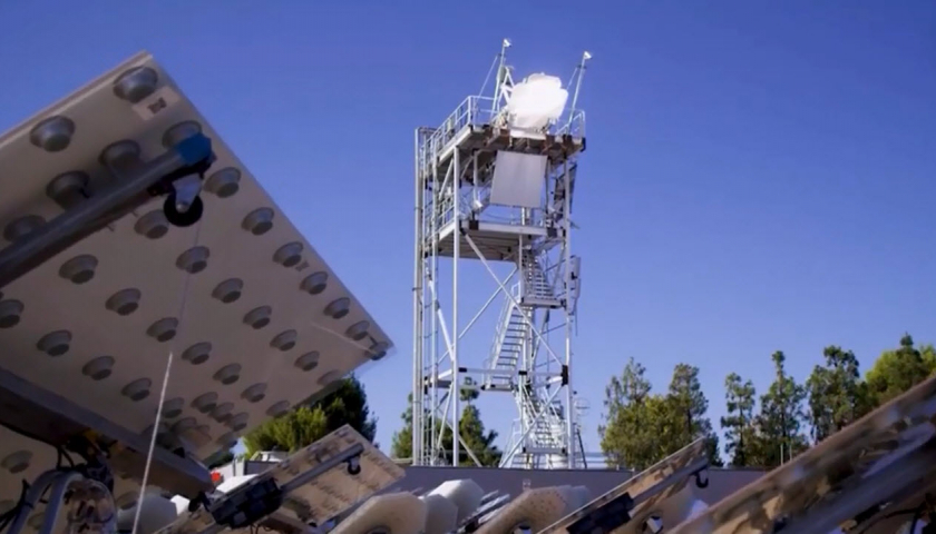 Nhà máy ở Lancaster (Mỹ) gồm hệ thống gương phản xạ ánh sáng mặt trời vào một tháp thu nhiệt, giúp sản xuất điện và hydro sạch.