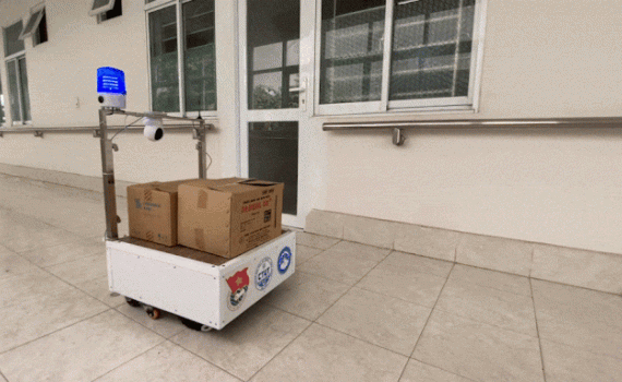 Robot vận chuyển hàng cho bác sĩ và bệnh nhân trong khu cách ly do anh Trần Hoài Tâm, giảng viên ĐH Kỹ thuật và Công nghệ (Cần Thơ) sáng chế với chi phí...
