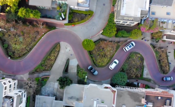 Đường Lombard dốc 27 độ tại San Francisco chỉ dài 400 m nhưng có tới 8 khúc cua.