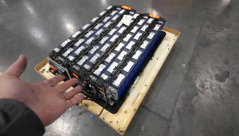 Những gói pin xe điện hàng trăm kg được đưa vào máy nghiền công nghiệp, phân loại thành những thành phần khác nhau.