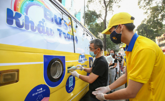Xe có chiều dài 7 m, chiều ngang 3,1 m, đặt hai máy rửa tay và phát khẩu trang cảm biến tự động để người dân sử dụng, toàn bộ quy trình diễn ra trong 15...