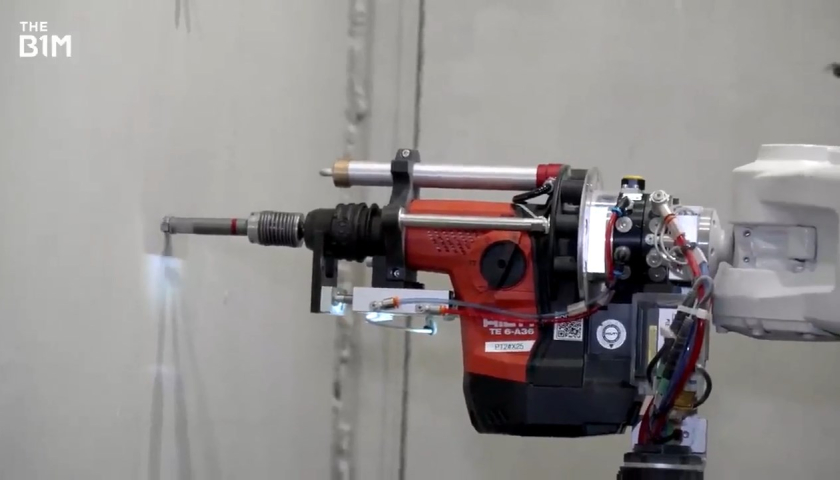 Hệ thống robot RISE trèo vào giếng thang máy, xác định vị trí và khoan lỗ bu lông trong khi con người chỉ cần giám sát từ xa qua camera.