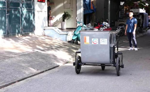 Nhóm bốn sinh viên ĐH Bách khoa Hà Nội sáng chế xe thu gom rác chạy tự động bằng điện với chi phí khoảng 10 triệu đồng.