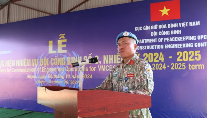 Đội Công binh số 3 ra quân thực hiện nhiệm vụ tại Phái bộ UNISFA