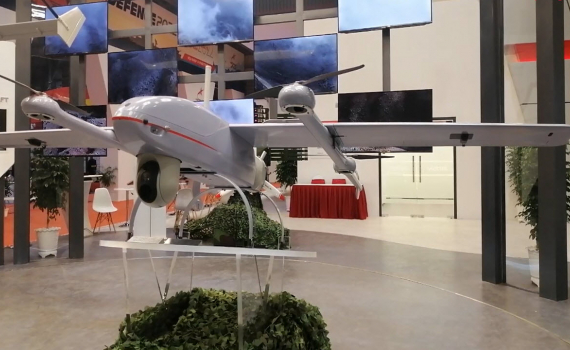 Máy bay không người lái VUA-SC-3G do Tập đoàn Viettel sản xuất, có sải cánh 3,2 m, khối lượng cất cánh 26 kg, được trưng bày tại triển lãm Quốc phòng quốc...