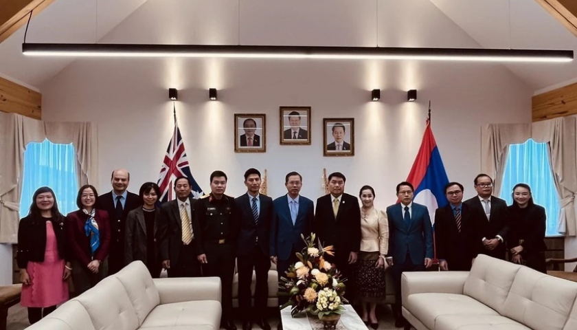Đại sứ Phạm Hùng Tâm gửi lời chúc sức khỏe và thành công đến Đại sứ Lào Sinchai Manivanh và phu nhân cùng toàn thể cán bộ, nhân viên Đại sứ quán Lào tại...
