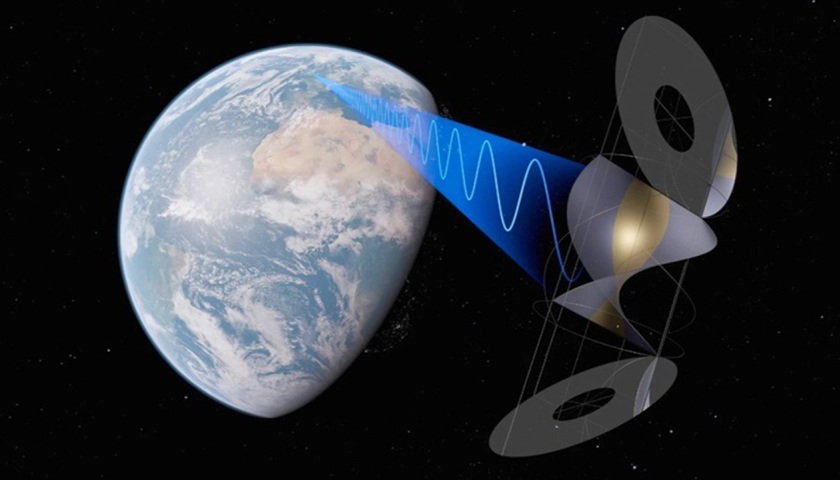 Năng lượng do vệ tinh lắp pin quang điện trên quỹ đạo sản xuất sẽ được biến đổi thành vi sóng truyền tới trạm thu nhận trên Trái Đất và nạp vào lưới...