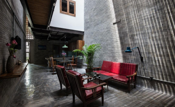 Với việc sử dụng các vật liệu đơn giản, gần gũi như gạch mộc, lưới mắt cáo, bê tông trần...các kiến trúc sư đã tiết kiệm khá nhiều chi phí cho gia chủ...