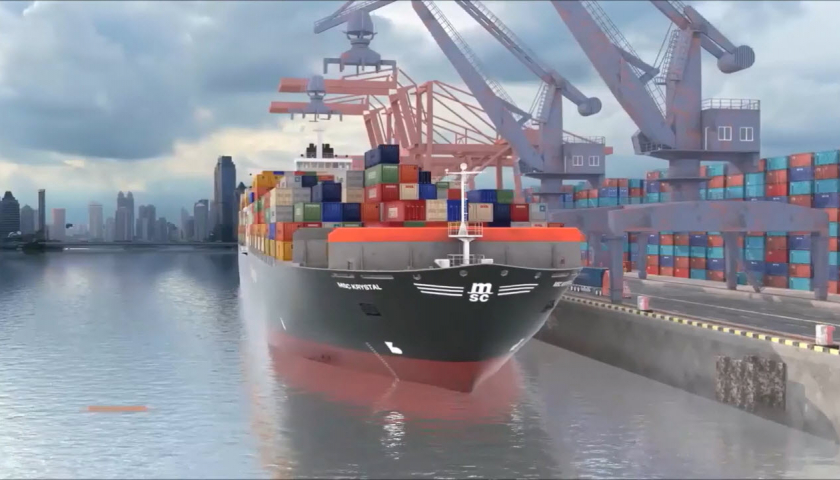 Tàu container chở một lượng lớn container trên boong và dù xếp chồng lên nhau rất cao, chúng cũng khó đổ vì được cố định chắc chắn.