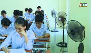 Học sinh nỗ lực học tập khi thời tiết nắng nóng