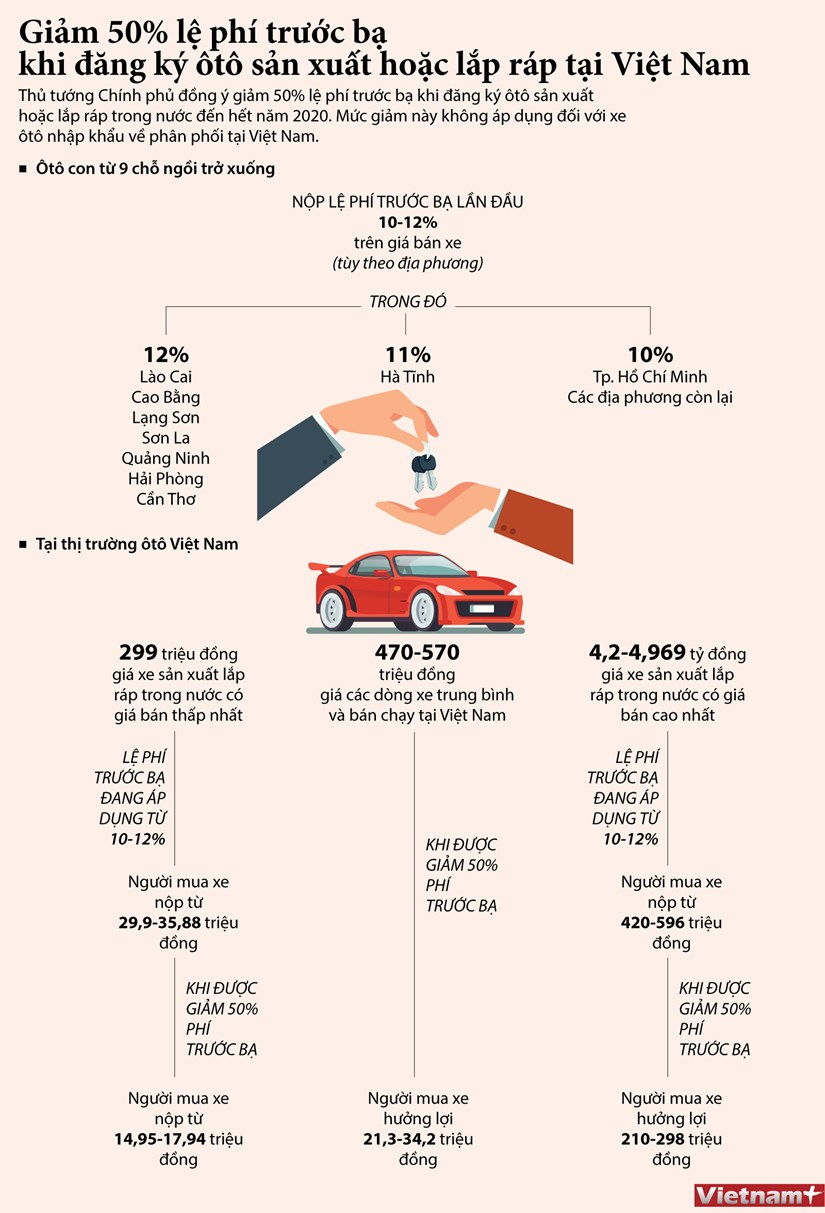 Thủ tướng đồng ý giảm 50% lệ phí trước bạ khi đăng ký ôtô sản xuất hoặc lắp ráp trong nước đến hết năm 2020 nhằm kích thích tiêu dùng trong nước; mức giảm này không áp dụng đối với xe ôtô nhập khẩu.