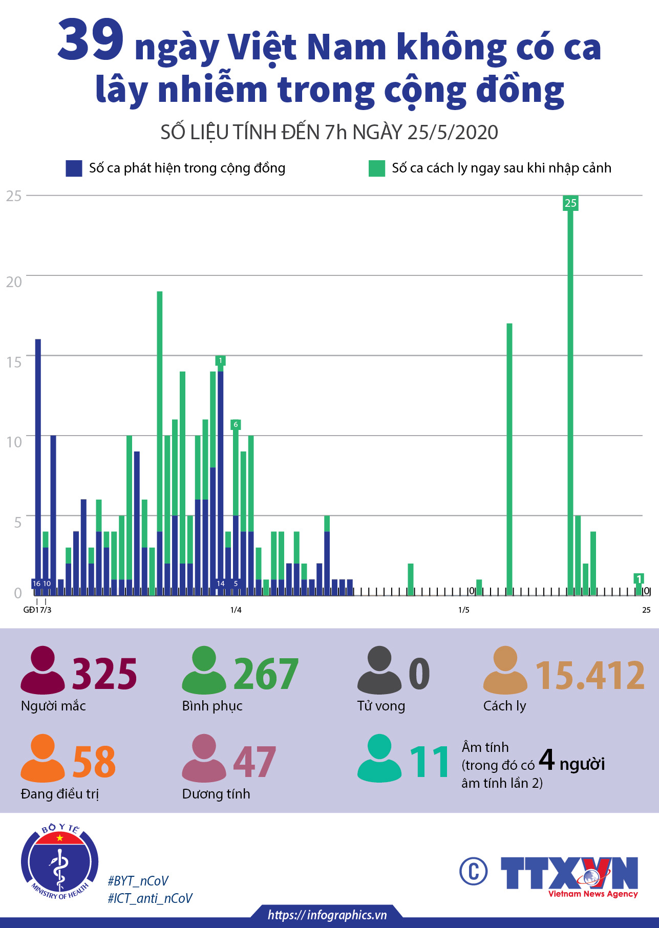 39 ngày Việt Nam không có ca lây nhiễm trong cộng đồng (số liệu tính đến 7h ngày 25/2020)