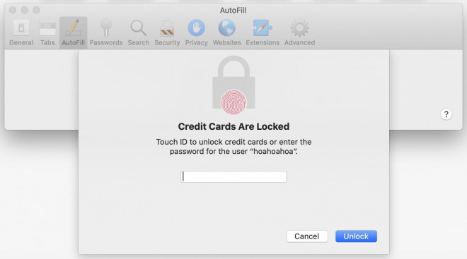 Đầu tiên, bạn hãy bấm vào tùy chọn Safari ở góc trên bên trái và chọn Preferences. Tiếp theo, bạn chuyển sang thẻ Autofill, nhấn Edit tại mục Credit cards và nhập mật khẩu máy tính khi được yêu cầu