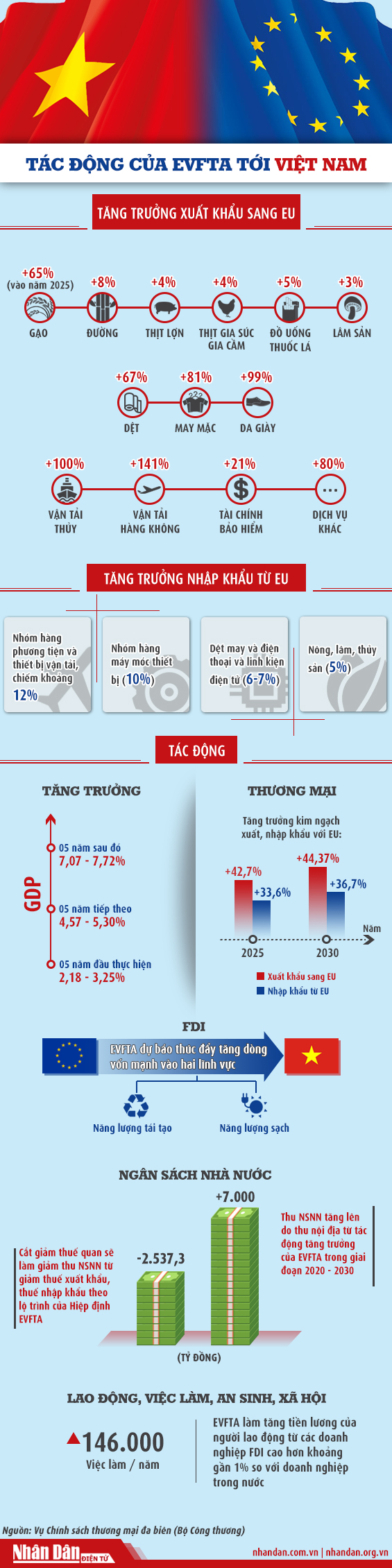 Thực hiện ý kiến chỉ đạo của Thủ tướng Chính phủ, Bộ Kế hoạch và Đầu tư đã tiến hành nghiên cứu đánh giá tác động của Hiệp định EVFTA đối với Việt Nam. Nghiên cứu đã cung cấp một số thông tin chủ yếu.