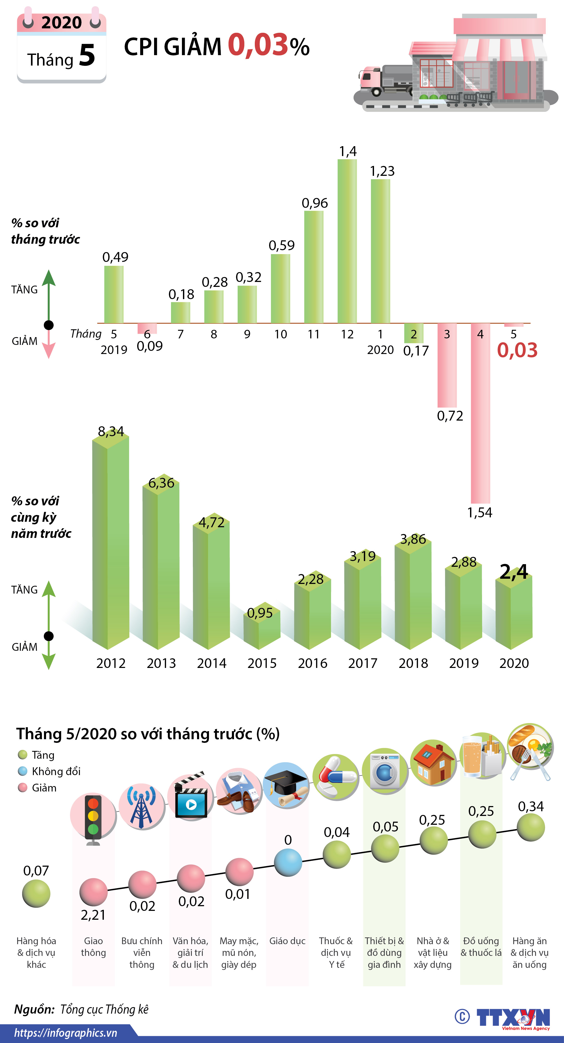 CPI tháng 5/2020 giảm 0,03%